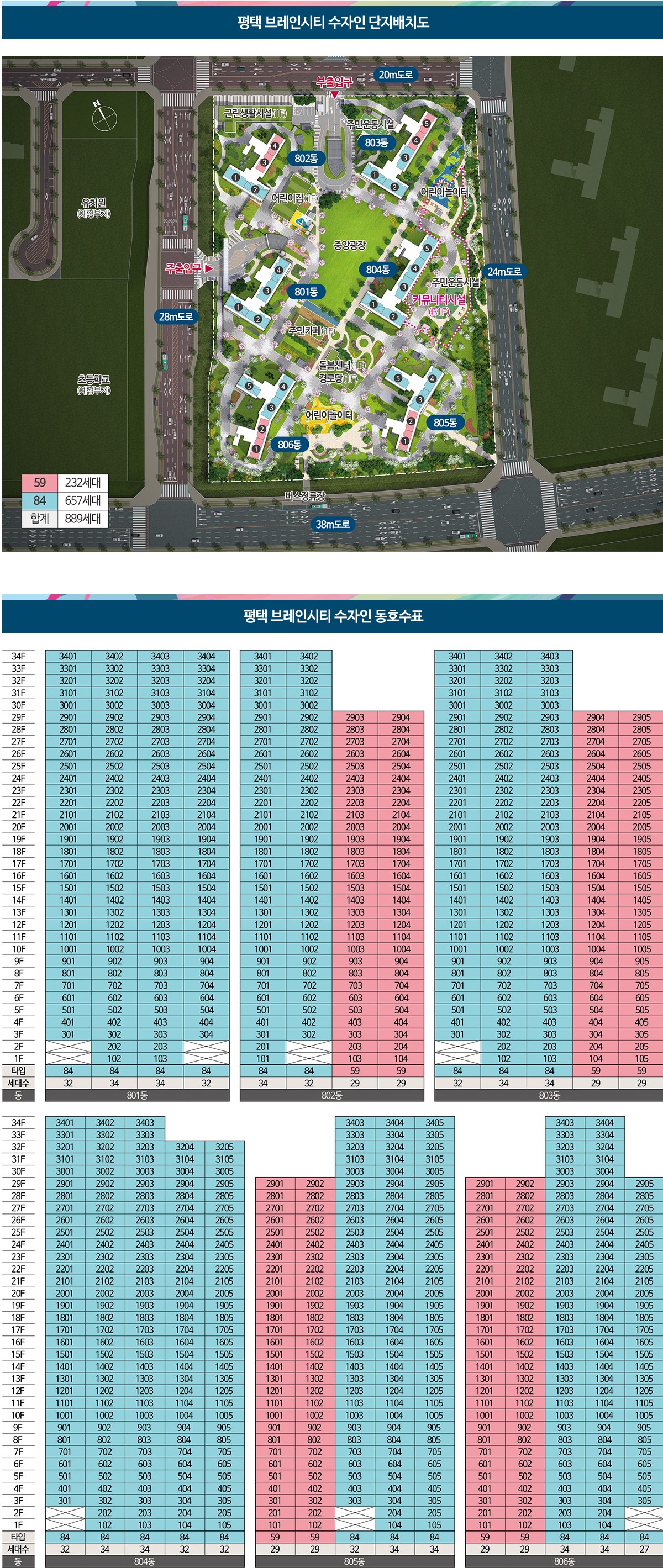 상기 동·호수 배치도는 제작과정상 오탈자가 있을 수 있으므로, 계약시 해당 동 · 호수를 견본주택에서 반드시 확인하시기 바랍니다.